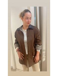 Gabardina con cuello polipiel, cordón ajustable en cintura y forro de cuadros